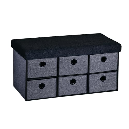 Kesper sittbänk med förvaringslådor och sittdynor i teddy-tyg, material: FSC-certifierad fiberskiva, mått: 76 x 38 x 38 cm, färg: grå/svart, | 15953