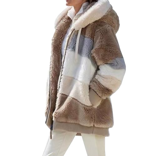 Fleecekappa dam med huva, plyschjacka dam teddy varm fodrad fleecejacka ledig teddyjacka fluffig teddyfleece jacka lång kofta mysig vinterrock huvjacka övergångskappa, kaffe, S