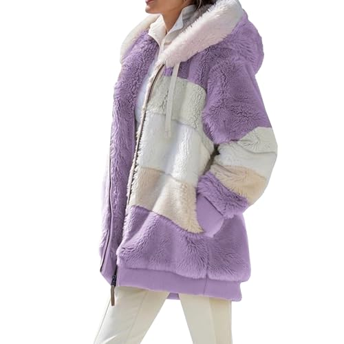 Fleecekappa dam med huva, plyschjacka dam teddy varm fodrad fleecejacka ledig teddyjacka fluffig teddyfleece jacka lång kofta mysig vinterrock huvjacka övergångskappa, ROSA, M