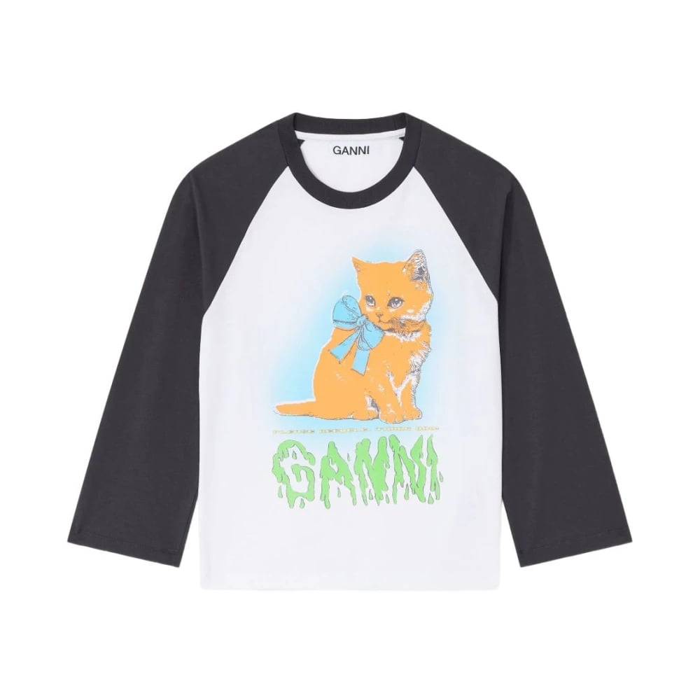 Ganni, Toppar , Dam, XS, Bomull, Vit Katt Grafisk Baseball Tee