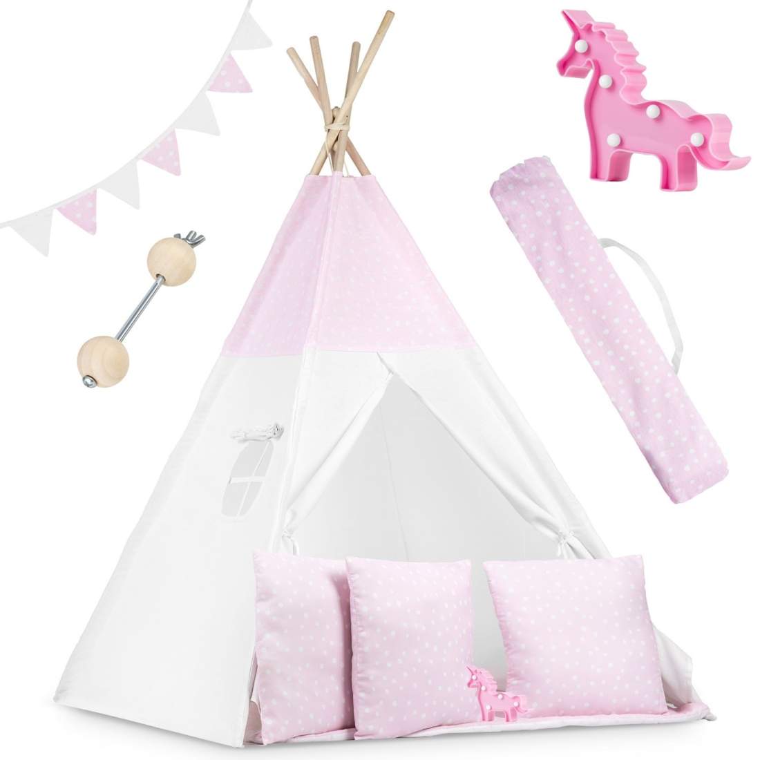 Nukido Tipi TEEPEE barntält rosa med krans, kuddar, stor matta, stabilisator