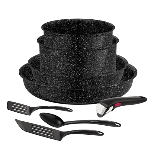 Tefal Ingenio 10 st köksredskap, stekpannor, kastruller, lock, handtag, icke-induktion, non-stick-beläggning, stapelbar, diskmaskinssäker tillverkad i Frankrike, lätt på L1599902