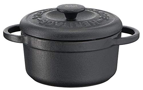 TEFAL PIERRE GAGNAIRE E223S404 Heritage Mini Gjutjärnsgrytor Set Mattsvart 4 Delar 10 Cm Emaljbeläggning På In- & Utsidan Perfekt För Grytor & Långkok
