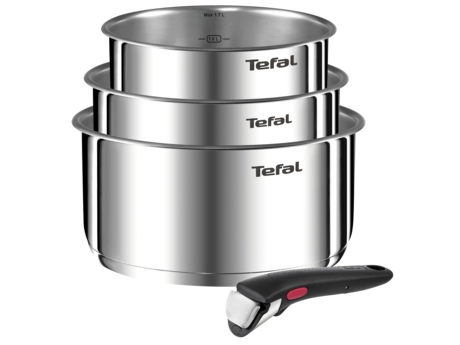 Tefal Ingenio Set med 4 delar, 16/18/20 cm kokkärl +1 avtagbart handtag, induktion, rostfritt stål, stapelbar, platsbesparande, tillverkad i Kina, preferens på L898S334