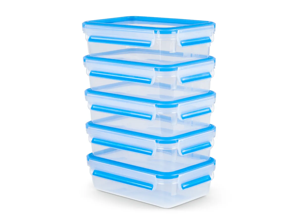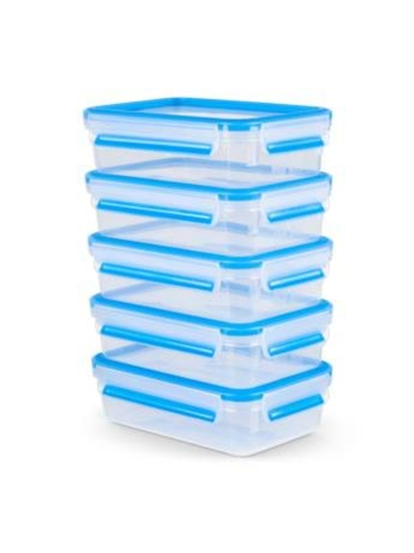 Tefal Master Matbehållare för mat, rektangulär, transparent/blå, plast, transparent/blå, 5-delars set