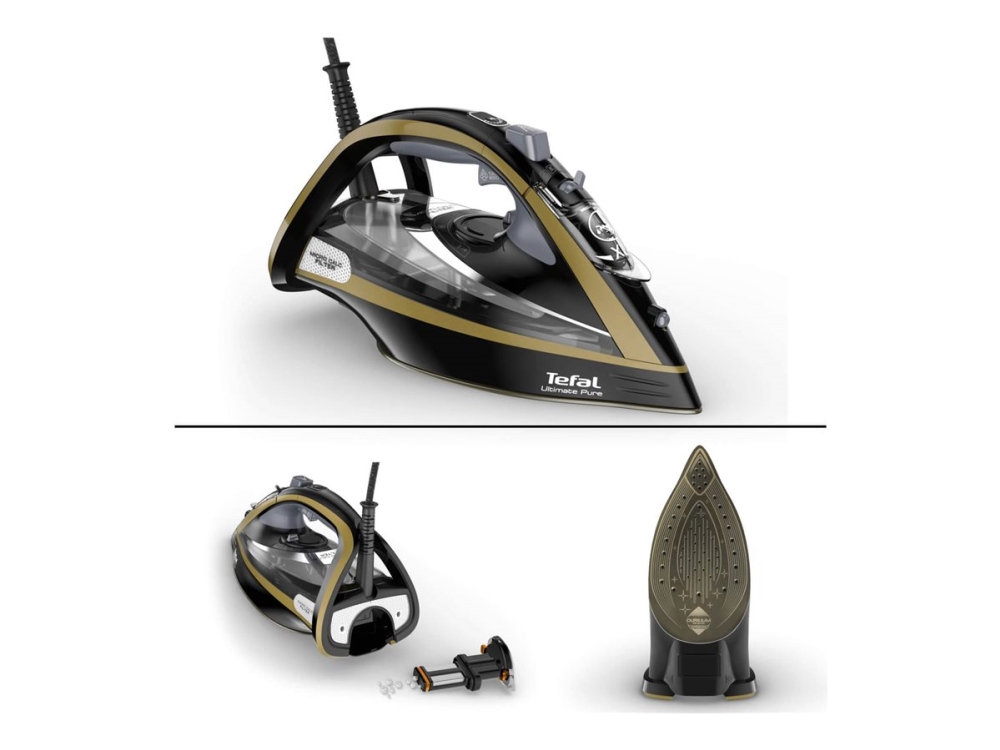 Tefal Ultimate Pure Fv9865e0 - Ångstrykjärn Med Automatisk Avstängning - Sula Durilium Airglide - 3000 W - Svart/Guld