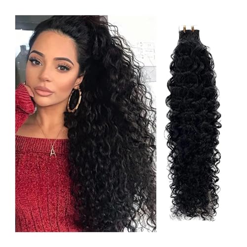 Tejp i hårförlängningar Lockigt hårförlängningstejp i människohår Svart tejp på lockigt hårförlängning Natursvart #1B Weft Deep Wave Tejp i hårförlängningar Tejpa in Extensions (Size : 40 pcs, Color