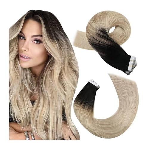 Tejp i hårförlängningar Blont hårförlängning Människohår Svart Ombre till Ash Blond Blanda med platinablondtejp i förlängningar Mänskligt hår Remy Rak Tejp ins 12-24 tum Tejpa in Extensions(20 pcs,22