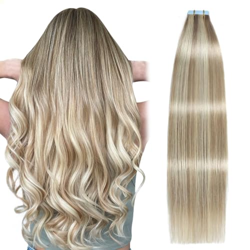 YoungSee Tape Extensions Människohår Blond 45cm Human Hair Extensions Tejp Remy Skin Weft Tape Hårförlängning Människohår Tejp i Extensions Ash Blond with Bleach Blond Rak 50g 20 Wefts #18/613