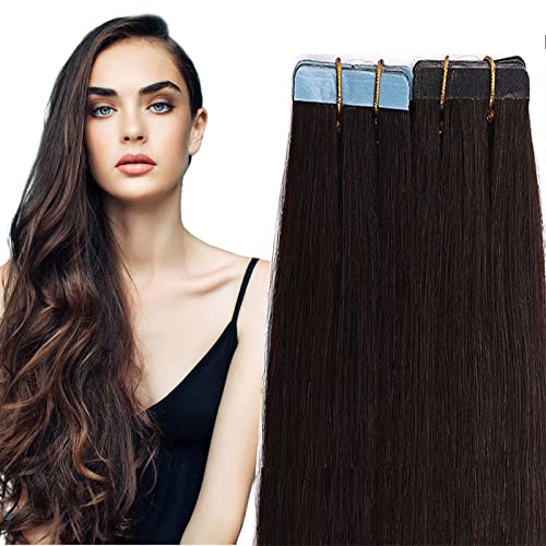 Qingliang Tape Extensions äkta hår, mörkaste brun, 40 cm, 20 st./förpackning, 50 g tejp, förlängningar, äkta hår, osynlig, silkeslen, rak, hud, Weft Tape Ins, naturliga förlängningar (40 cm #2
