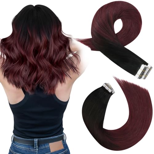 Moresoo Tape Extensions äkta hår balayage svart till vinröd #1B/99J hårförlängning tejp äkta hår förlängningar 45 cm osynlig tejp i mänskligt hår förlängningar 20 stycken 50 gram