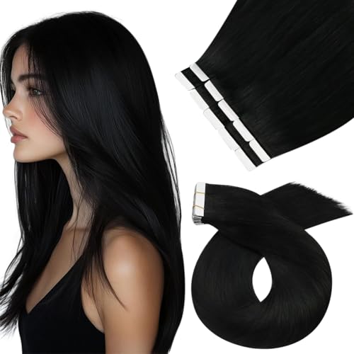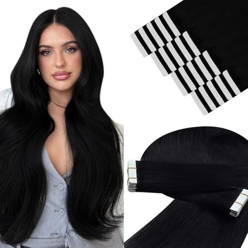 SUYYA Tape Extensions äkta hår, osynlig tejp i förlängningar, äkta hår, sidenlen rak Remy Tape hårförlängningar äkta människohår 12 tum 30 cm 20 stycken 40 g #1B naturligt svart