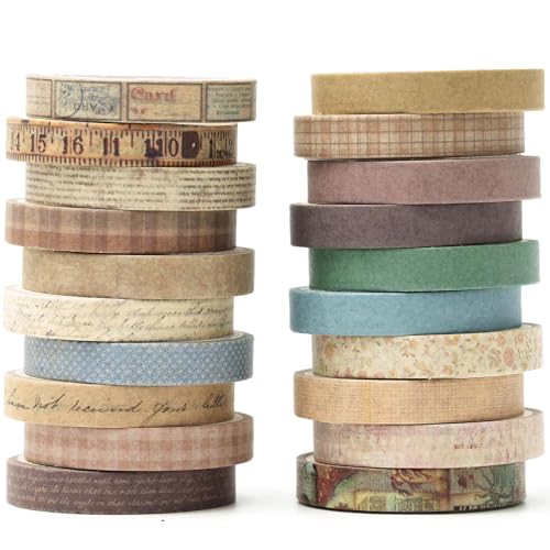 YUBX 20 rullar tunn washi tejp set maskeringstejp antikt mönster dekorativ tejp färgglad för gör-det-själv-hantverk, bullet journals, planerare, scrapbooking, förpackning