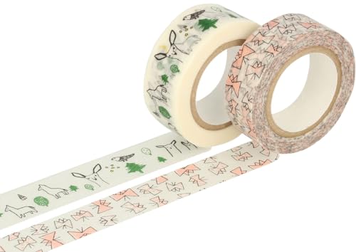 Dailylike Set 2 självhäftande tejp maskering tejp washi bonny olika mönster 15mm.x10m.