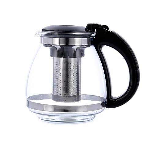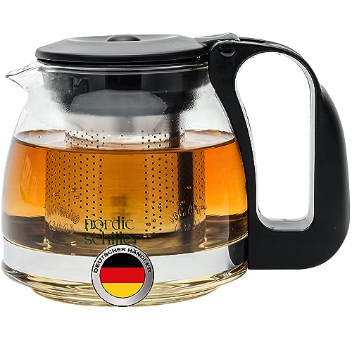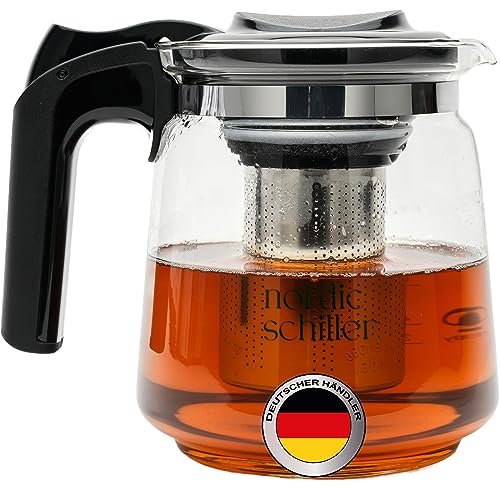 NORDIC SCHILLER Premium glastekanna, värmebeständig glaskanna med lock 1 500 ml tekanna med silinsats och rostfritt stål filter tebryggare för lösa blad te