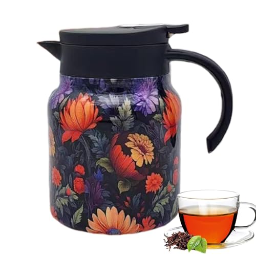 Termoskanna för te | vintage tekanna | blommig tekanna i rostfritt stål | blommor tekanna av rostfritt stål | vintage blommönster tesil integrerad tesil | tekanna med blommönster | med fint filter