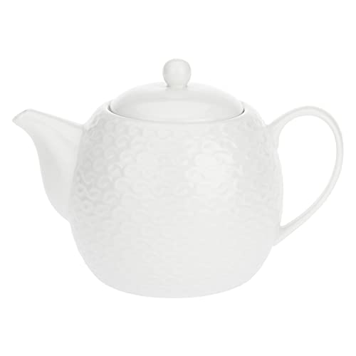 London Boutique tekanna, tekannor för 4 med inbyggt filter för te med lösblad, 1,3 L stor tekanna, vit tekanna med silverkant, lätt, Fina China tekanna, perfekt tebryggare för teälskare
