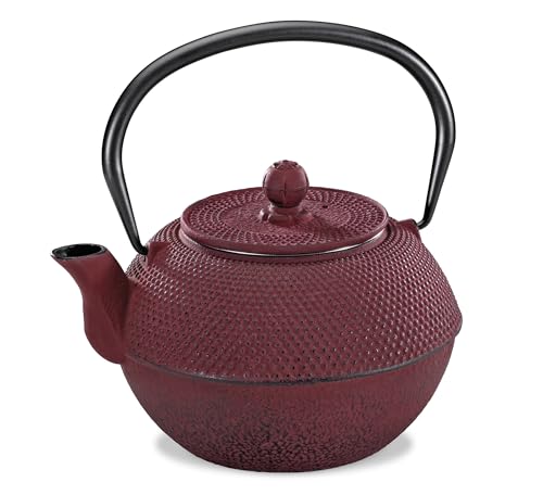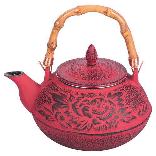 800 ml gjutjärn tekanna bambuhandtag, filter i rostfritt stål, röd