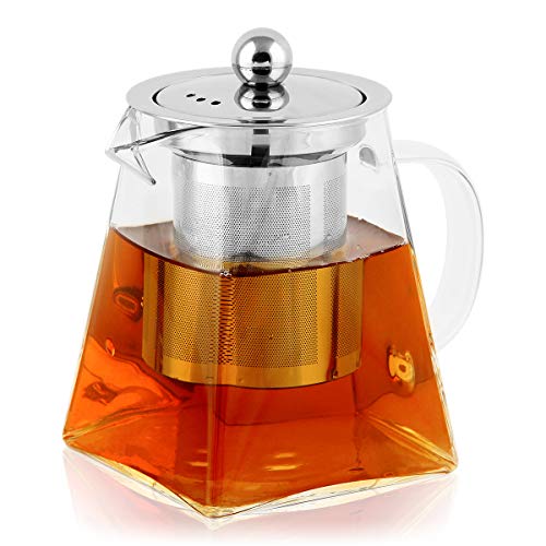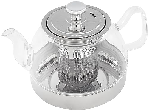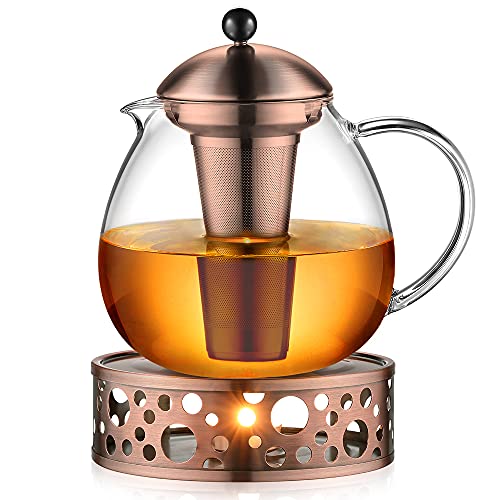 ecooe Glas tekanna med infusionsapparat 1000 ml med tekannor värmare 18/8 rostfritt stål, glastekanna med avtagbar infusion i rostfritt stål, för svart te, grönt te, doftande fruktte