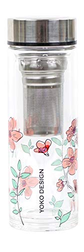 Yoko Design 1673 tekanna av glas, dubbelväggig, blommor, rosa, 19,5 cm