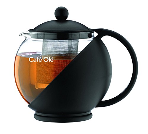 Café Ole CMP-07TP daglig rund tekanna infusionskorg glas tekanna löst blad 700 ml/24 oz, svart