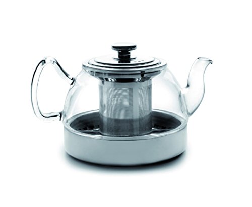 Glastal Tekanna i glas, silver, 1 500 ml, med tesil i 18/8 rostfritt stål, tebryggare i borosilikatglas, lämplig för tevärmare