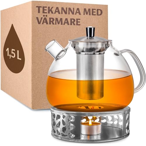 Cosumy Tekanna i glas med tepanna och tevärmare i presentförpackning - 1,5 liter - Håller värmen länge - Diskmaskinssäker