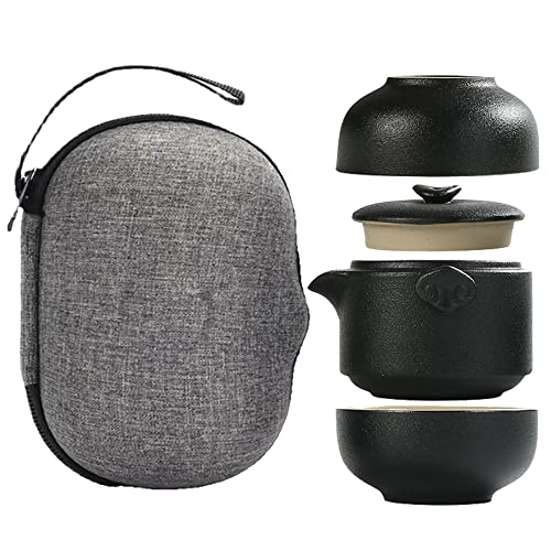 fanquare Portabelt resete-set, handgjord kung fu teset, porslin tekanna, bambu tebricka med en bärbar resväska, svart