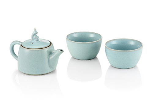 TEA SOUL Ru Ware porslin tekanna med 2 koppar, blå, 22,8 x 14,2 x 9 cm