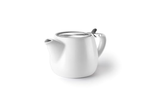 Portmeirion x Sophie Conran vit porslin tekanna – klassisk engelsk 2 pint tekanna med handtag för eftermiddagste, kontor, utomhusbruk, present eller daglig underhållning
