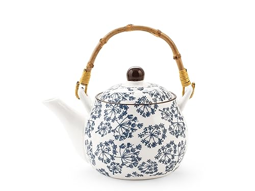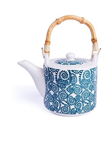 H&H Silk Porslin Tekanna, med utdragbart bambu-handtag, olika dekorationer, 500cc, blå och vit