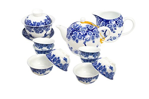 TEA SOUL vitt porslin, dekorerad med vackra bilder av fjärilar och blommor i blå: teservetten består av en gaiwan, en kruka, tekanna och åtta koppar, ingen