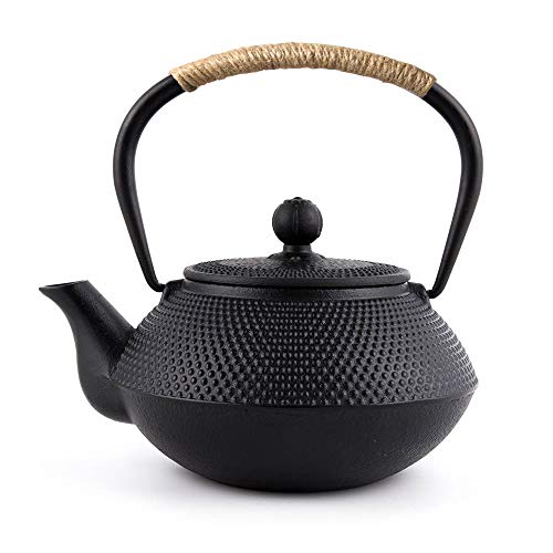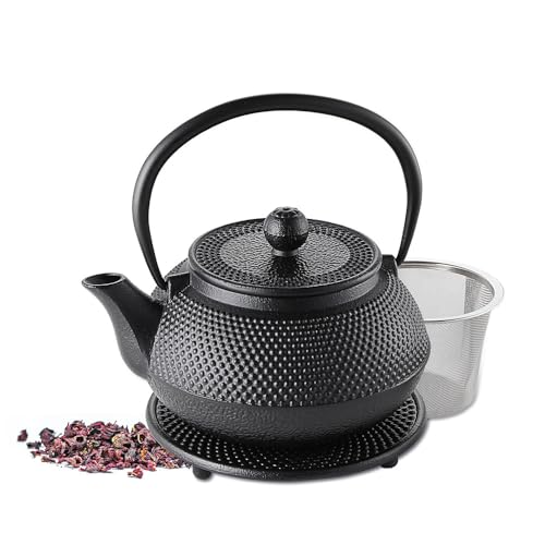 Velaze gjutjärn tekanna, japansk gjutjärn tekanna med rostfritt stål infusioner, hållbart gjutjärn med en helt emaljerad interiör, vacker hamrad design, 800 ml/28 oz