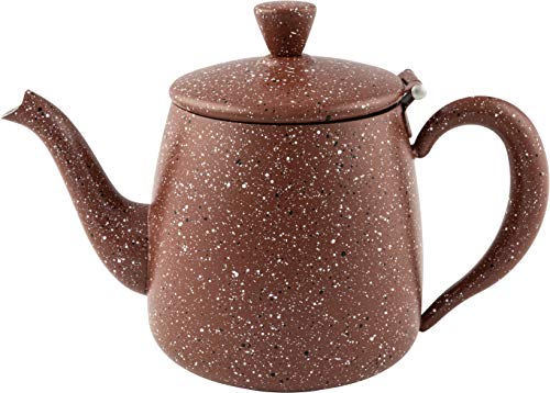 Café Olé PT-048RG förstklassig premium 48 oz 1,35 l tekanna av högkvalitativt rostfritt stål – röd granit, droppfri hällning, ihåliga handtag och gångjärnslock, 1,35 liter