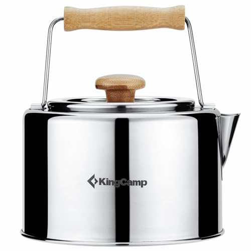KingCamp Camping vattenkokare rostfritt stål, vattenkokare bambuhandtag mot skållning, kaffekanna, tekanna, camping tekanna rostfritt stål bärbar, gasspis camping utomhus 1,2 l