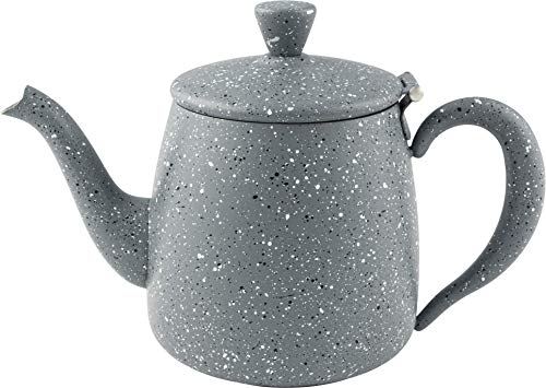 Café Olé PT-048GG förstklassig premium 48 oz 1,35 l tekanna av högkvalitativt rostfritt stål – grå granit, droppfri hällning, ihåliga handtag och gångjärnslock, 1,35 liter