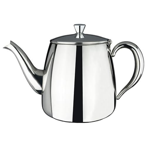 Café Olé BUT-035 Buxton 35 oz 1 l tekanna av högkvalitativt rostfritt stål 18/10 – högglanspolering, bryta, dricka te, droppfri hällning, ihåliga handtag, 1 liter