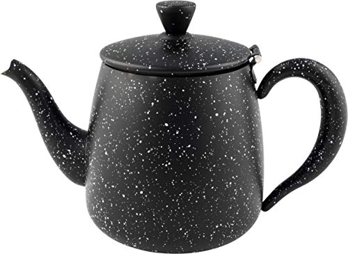 Café Olé PT-048BG förstklassig premium 48 oz 1,35 l tekanna av högkvalitativt rostfritt stål – svart granit, droppfri hällning, ihåliga handtag och gångjärnslock, 1,35 liter