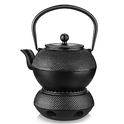 MIAMIO - Tekanna Set med Värmare / 1L / 1000 ml Tekokare med Infuser för Löst Te - Gåva för Kvinnor/Teälskare (Svart)