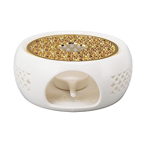 Vegena Tekanna - värmeljus för tekanna, värmare keramik med korkkudde, kaffevärmare, tekanna värmare, vit tevärmare, ihålig snidad design, tekanna värmare för värmebevarande te och kaffe