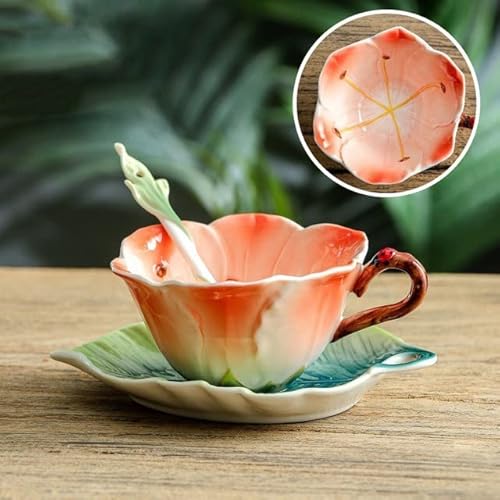 YUWEN kreativ 3D handmålad fusang blomma solros clivia emalj färg keramik kaffe te set eftermiddag tekopp tallrik