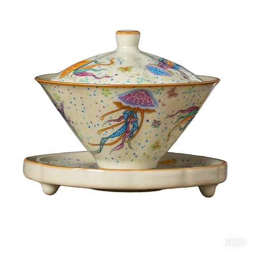 Mozentea Kinesisk porslin Kung/gong fu te keramik Gaiwan Sancai tekopp bästa presenten (glas)