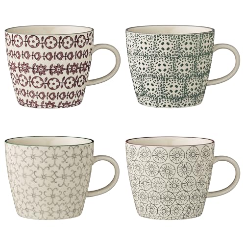 Bloomingville Koppar Karine – kaffekopp tekopp med handtag, grå grön lila, keramik, set om 4