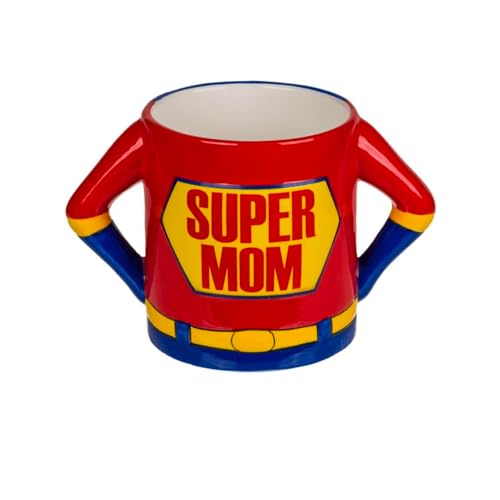 Avilia Superhjälte te och tekopp för mamma - mugg med supermammadesign perfekt som present till mors dag, keramik, 18 x 11 cm, 450 ml, röd och blå