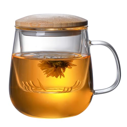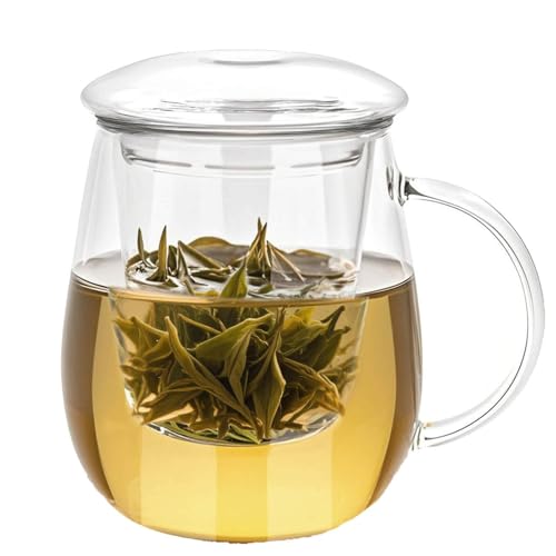Gohytal tekopp med lock och sil, 420 ml dubbelväggigt glas tekopp, borosilikat glaskopp, teglas med handtag, diskmaskinssäker, perfekt tebryggare, julklapp för män och kvinnor