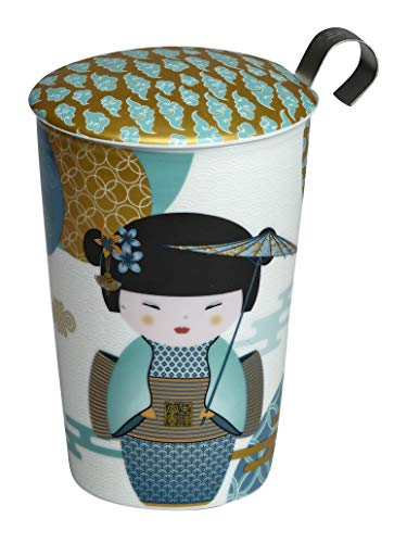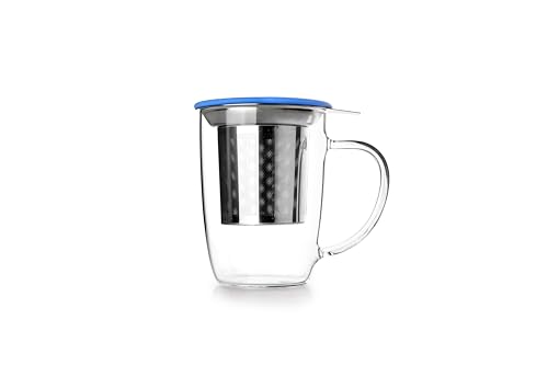 Cosumy Tekopp med infusionsbehållare och lock 500 ml stor - keramisk - håller värmen länge (Aqua Blå)