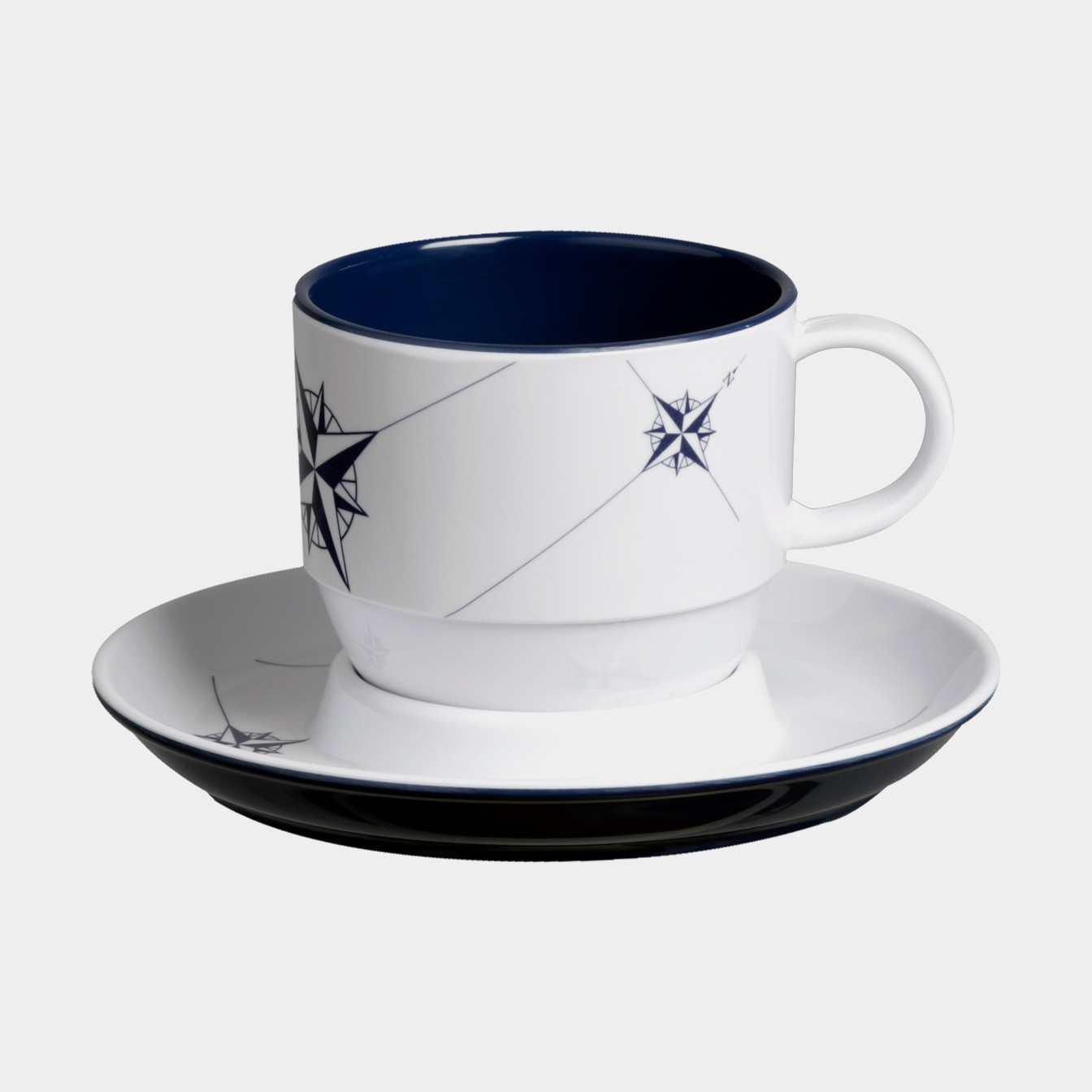 Kaffe/tekoppar i melamin med fat Marine Business Northwind, vit/blå, 22 cl / 220 ml, 6-pack