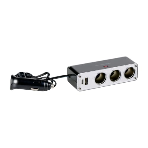 Dunlop Bil fördelningskontakt 12–24 V – 3 cigarettändaruttag – 2 USB-portar 3,1 A – laddare för telefon surfplatta instrumentkamera – adapter för bil och lastbil