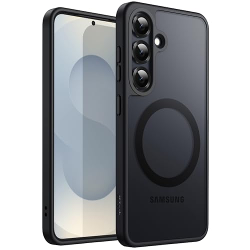 JETech Magnetisk Skal för Samsung Galaxy S25 5G, Kompatibel med MagSafe, Genomlysande Matt Baksida Stötsäker Telefon Fodral Case (Svart)