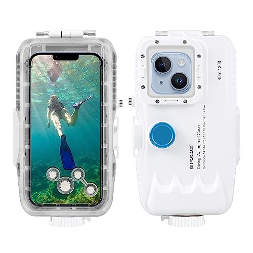 PULUZ undervattensvattentätt snorklingsfodral för iPhone 15/14/13/13/12/12 Pro, 40 m/130 fot skyddande fodral telefon foto video dykarfodral klart(inte för iso26)